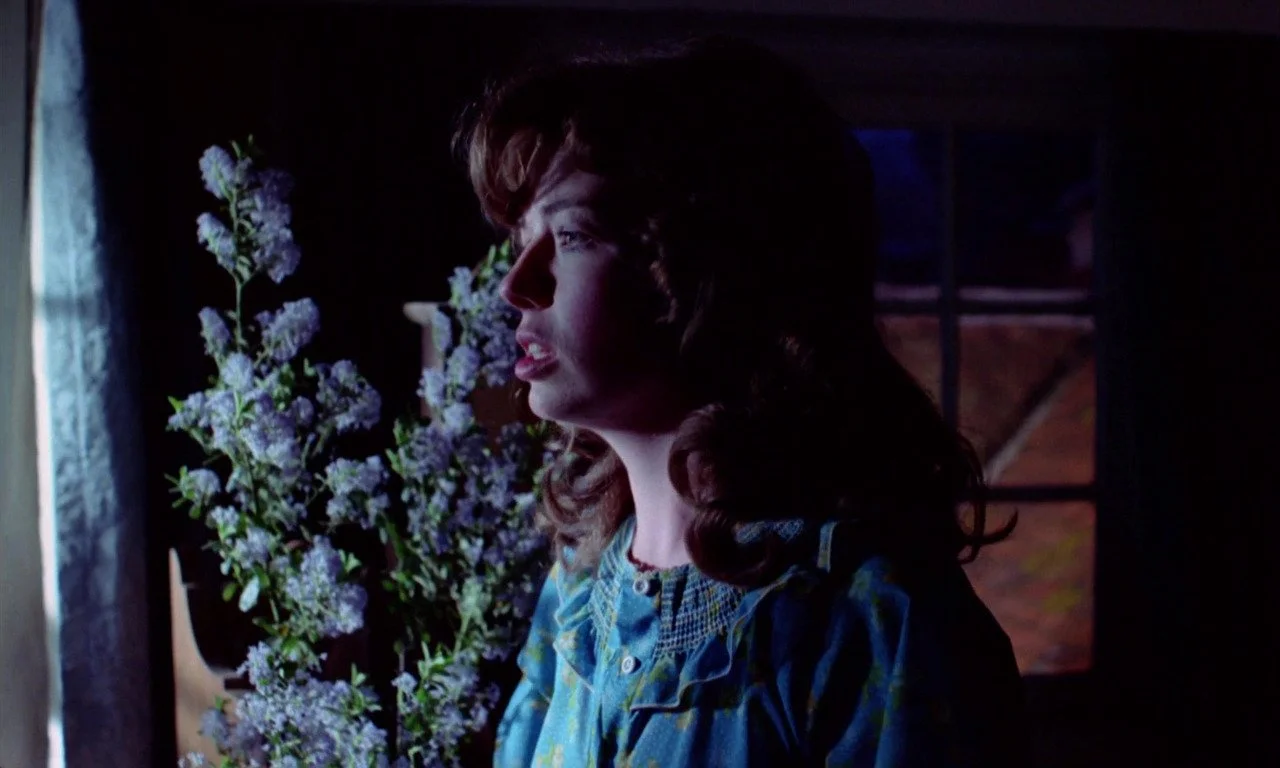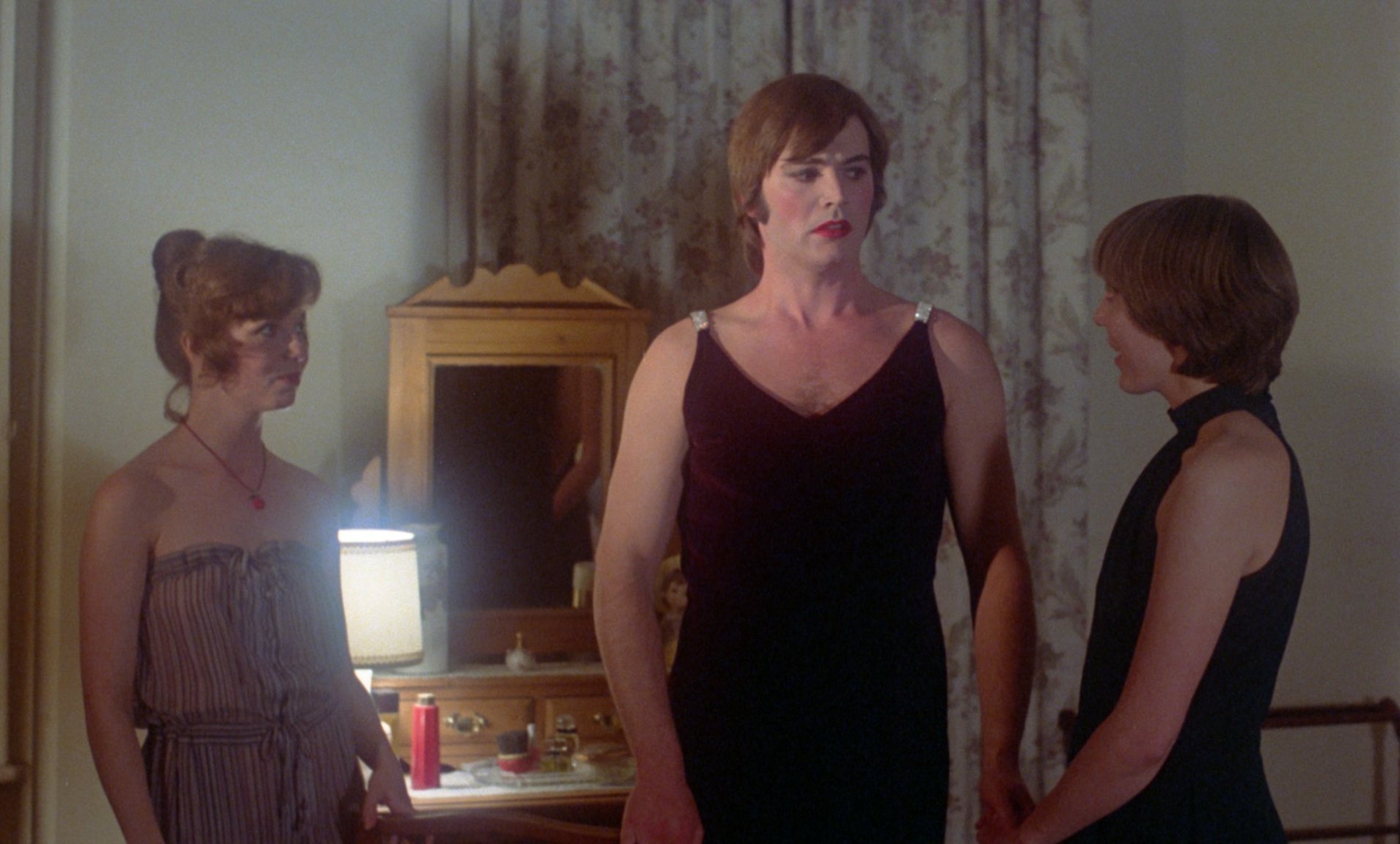 Anders by comparison is a stalwart symbol of masculinity. He’s tall, handsome and has an aura of mystery around him with a boyish innocence as well. Despite the fact that he’s an extraterrestrial and therefore biologically genderless, his arrival on Earth is signalled by the murder of a frolicking couple in the countryside, in a sequence rather reminiscent of slasher pictures. He chooses to assume the form of the man, giving himself the identity Anders Anderson, the name itself being etymologically similar to the Greek word andros (meaning ‘manly’), the repetition of which reinforces this idea. Whilst clearly on his mission to find a sufficient food source on Earth, Anders is otherwise indifferent to the situation playing out in the personal lives of Jessica and Jo, though Jo rather opaquely considers him a threatening presence to the girls’ relationship. Instead, Anders becomes fascinated by the world around him, such as cups of tea, house plants, the girl’s pet bird, the gorgeous countryside, trying all the house’s doors, etc. Almost by proxy, the curious nature of Jessica is drawn to this aspect of Anders’ behaviour, finding herself entranced by his strangeness. Initially, Jo is so blinded by her hatred of men that she fails to take his weirdness in any serious way, but she soon begins to despise his idiosyncrasies, seeing them as dangerous enticements for Jessica to become lulled by. Due to his animalistic nature, Anders also describes what he sees without prejudice or preconceived notions and likens Jessica to a caged animal, and he even makes animal-like misjudgements, such as falling into the pond whilst hunting. Moments like these bring it to the fore that in spite of his masculinity and his perceived status as an indomitable male force, he is in fact just as vulnerable and naive as the girls. In a reverse portrayal of religious baptism, Anders’ supposed divinity and aggrandised perception is shattered by his near-drowning, forcing the girls to save him from the foul waters. While Jessica is genuinely concerned for his safety, Jo instead chooses to blame Anders’ stupidity on his gender. Whether he likes it or not, Jo considers him a rival for Jessica’s affections, even though Anders never does this directly. He is either forced into being a rival by Jo dressing him as a woman, Jessica begging him to have sex with her or even in one of the more subtle moments, his clothing mirroring that of Jo’s attire.